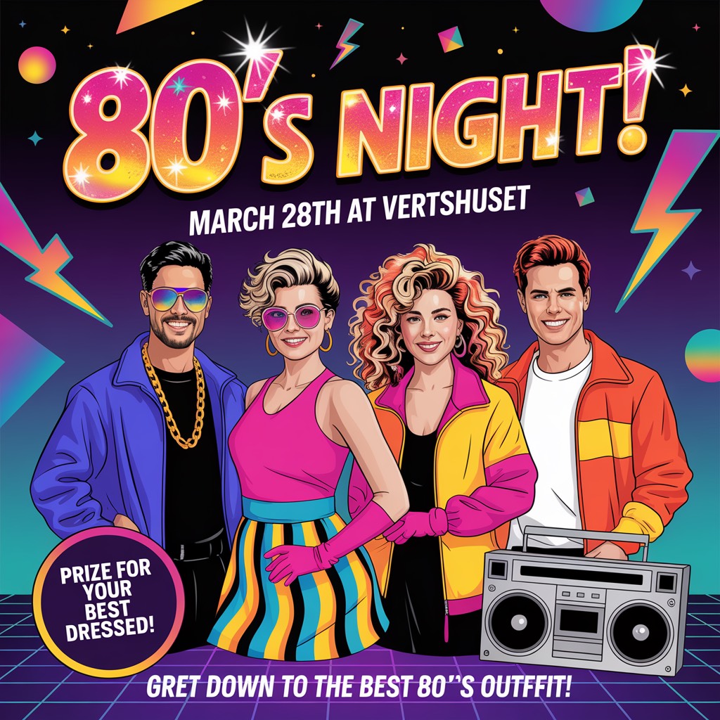 Bli med på 80-tals kveld på Vertshuset. Best kledde vinn premie.