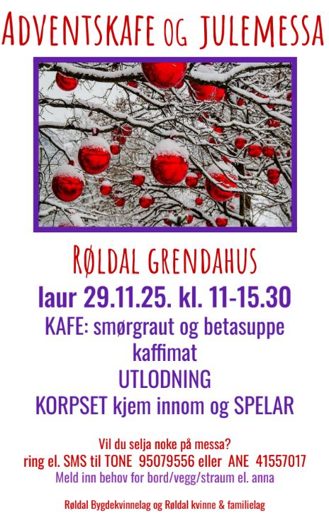 lørdag 29. november kl 11:00 - 15:30, Røldal grendahus