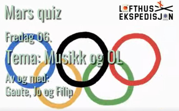 Endelig er det klart for marsquiz på Lofthus Ekspedisjon! Fredag 6. mars åpner vi dørene klokken 18:00, så kom inn og fyll lokalet med latter og forventning. Quizvert trioen Gaute, Jo og Filip lover quizmoro med temaene OL og Musikk – her blir det både svette og rytmer! Quizen sparkes i gang kl. 21:00, så det er bare å finne seg et godt bord og varme opp hjernen.