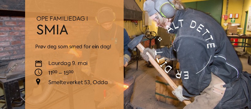 Veit du kva ein smed gjer? Har du lyst til å smi din eigne krok? Bli med på open familiedag inne i smia på den gamle smelteverkstomta i Odda, då vel!