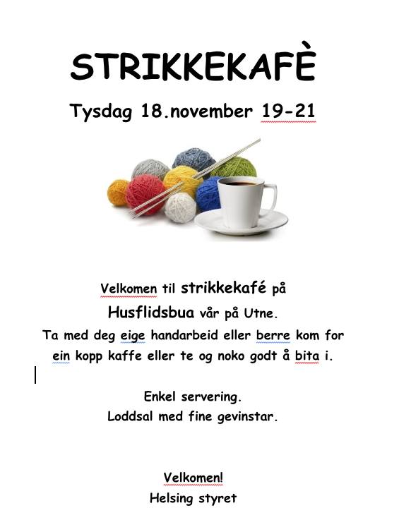 tirsdag 18. november kl 19:00 - 21:00, Husflidbua på Utne